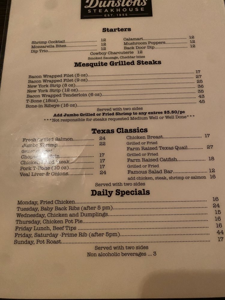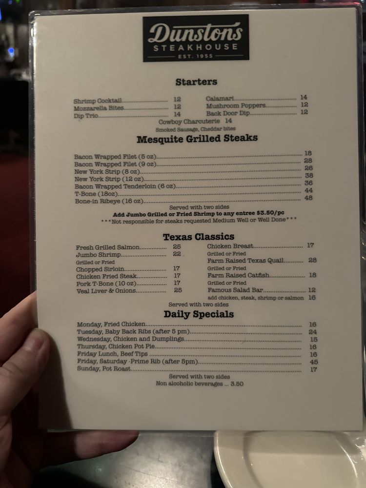 Dunston's Steak House in Dallas is a beloved icon offering a range of delectable options, including mesquite-grilled steaks and Texas classics. With a charming ambiance, friendly staff, and a salad bar filled with fresh veggies, it's a favorite spot for locals and visitors alike. The steaks are cooked to perfection, tender, and bursting with flavor, while the generous portion sizes ensure you won't leave hungry. The option to choose from a variety of sides, including mushrooms, collard greens, and mac n cheese, adds to the dining experience. Owned by the Dunston family since 1955, the restaurant sources its beef from their cattle company, guaranteeing quality and consistency. With reasonable prices, exceptional service, and a relaxed atmosphere, Dunston's Steak House promises a memorable dining experience for all.